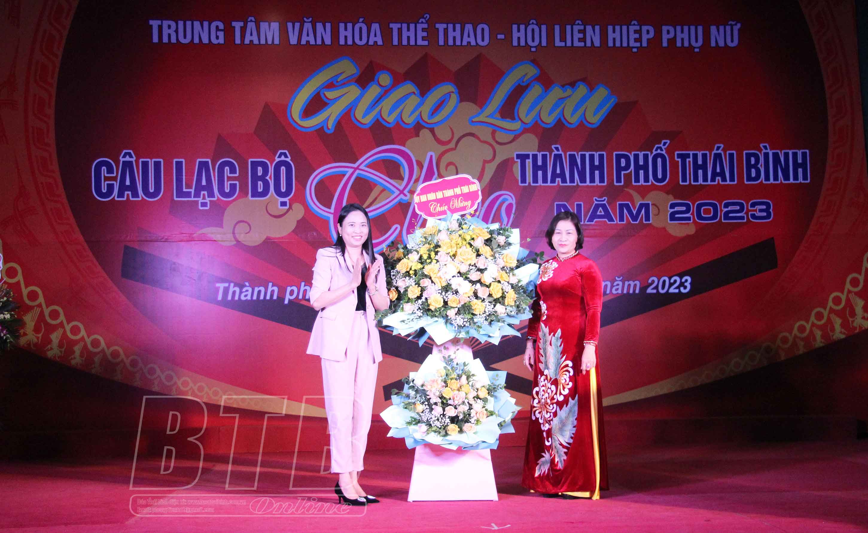 Đại diện lãnh đạo thành phố Thái Bình tặng hoa chúc mừng.