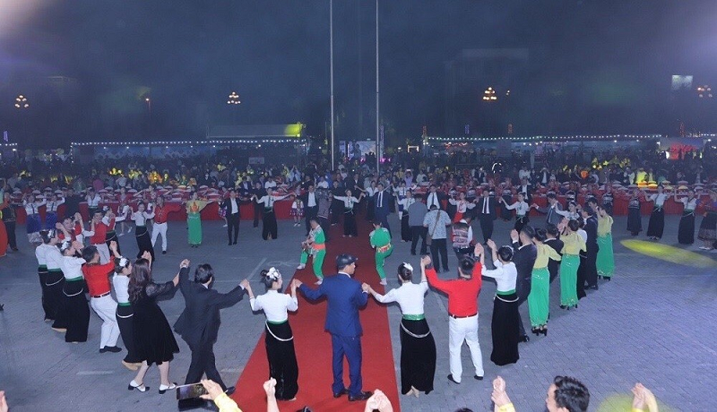 Màn múa xòe đoàn kết giữa hai tỉnh Điện Biên - Thanh Hóa.