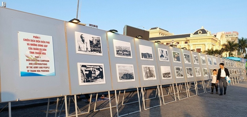 Trong không gian trưng bày triển lãm ảnh với chủ đề: ‘Thanh Hoá với chiến dịch Điện Biên Phủ” trưng bày hàng trăm bức ảnh và tư liệu quý giới thiệu các hoạt động tham gia chiến dịch Điện Biên Phủ của đồng bào, chiến sĩ Thanh Hoá trong cuộc kháng chiến chống thực dân Pháp trước đây.