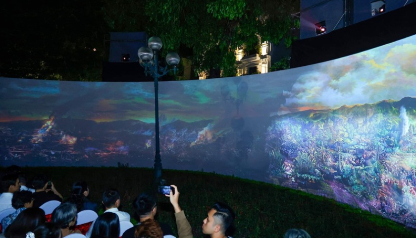 Trình chiếu bức tranh 3D về Chiến dịch Điện Biên Phủ tại Tượng đài Cảm tử Hà Nội