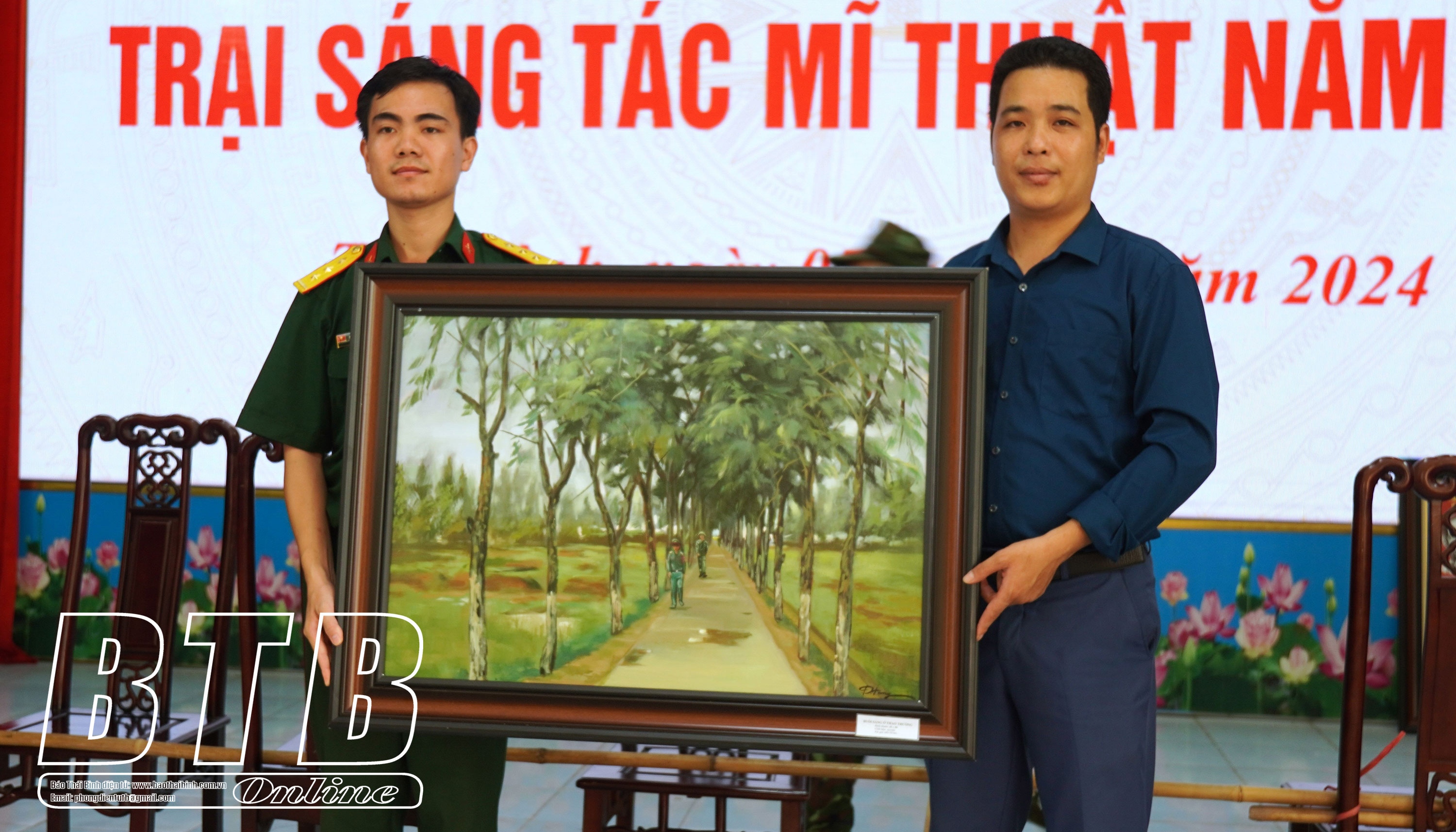 Tác phẩm mỹ thuật được hoàn thành tại trại sáng tác được họa sĩ trao tặng các chiến sĩ.