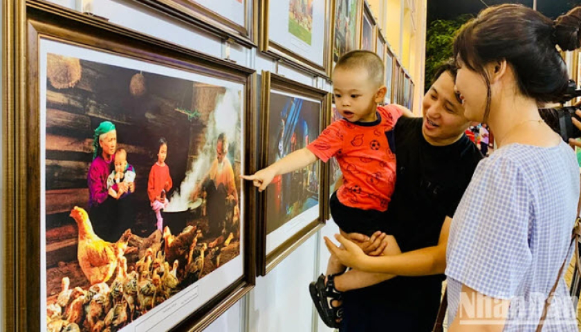 Đông đảo người dân và các gia đình trẻ đến dự và xem triển lãm hình ảnh về gia đình Việt Nam.
