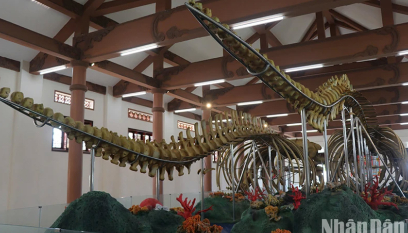Hai bộ xương cá Ông được phục dựng, trưng bày tại Lăng Tân được xác định có niên đại hơn 200 năm.