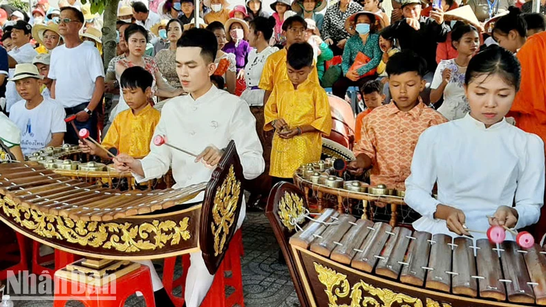 Biểu diễn nhạc cụ dân tộc Khmer.