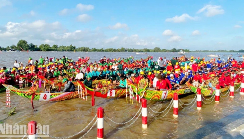 Các đội về dự giải đua ghe Ngo tại Ngày hội Văn hóa, Thể thao và Du lịch đồng bào Khmer tỉnh Kiên Giang lần thứ 16 năm 2024.