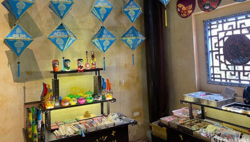 Trưng bày sản phẩm thủ công truyền thống của Huế trong Đại nội.