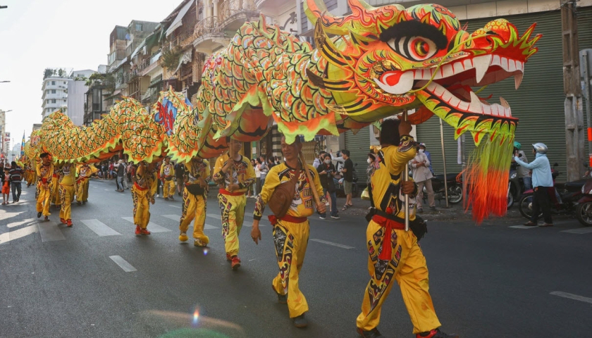 Múa lân sư rồng mừng Tết Nguyên tiêu ở Chợ Lớn, thành phố Hồ Chí Minh đầu tháng 2.
