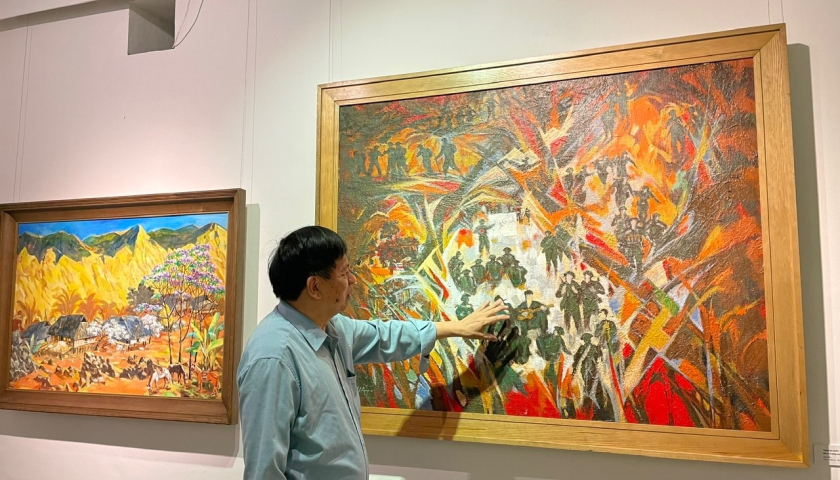 Nhiều tác phẩm về đề tài kháng chiến tại triển lãm.