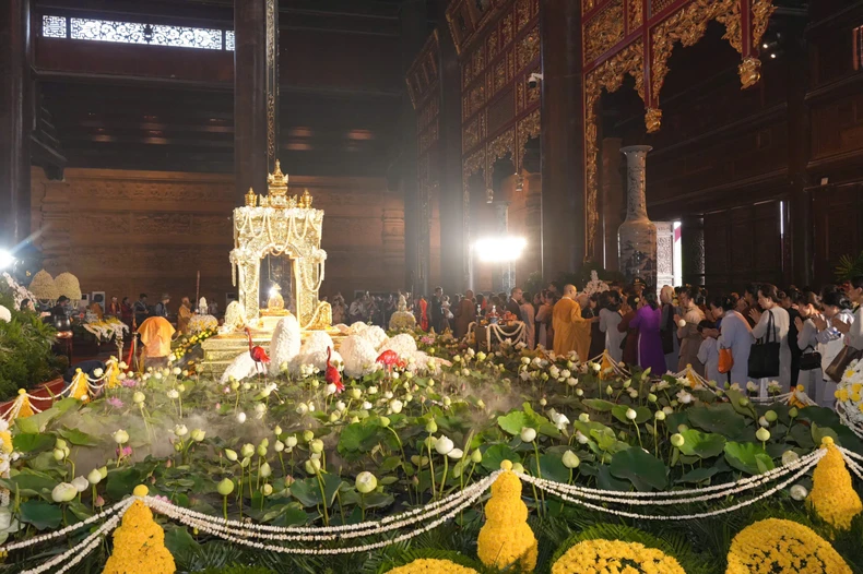 Hàng nghìn Phật tử tham gia Lễ cung rước, tôn trí xá lợi Đức Phật Thích Ca Mâu Ni tại chùa Tam Chúc