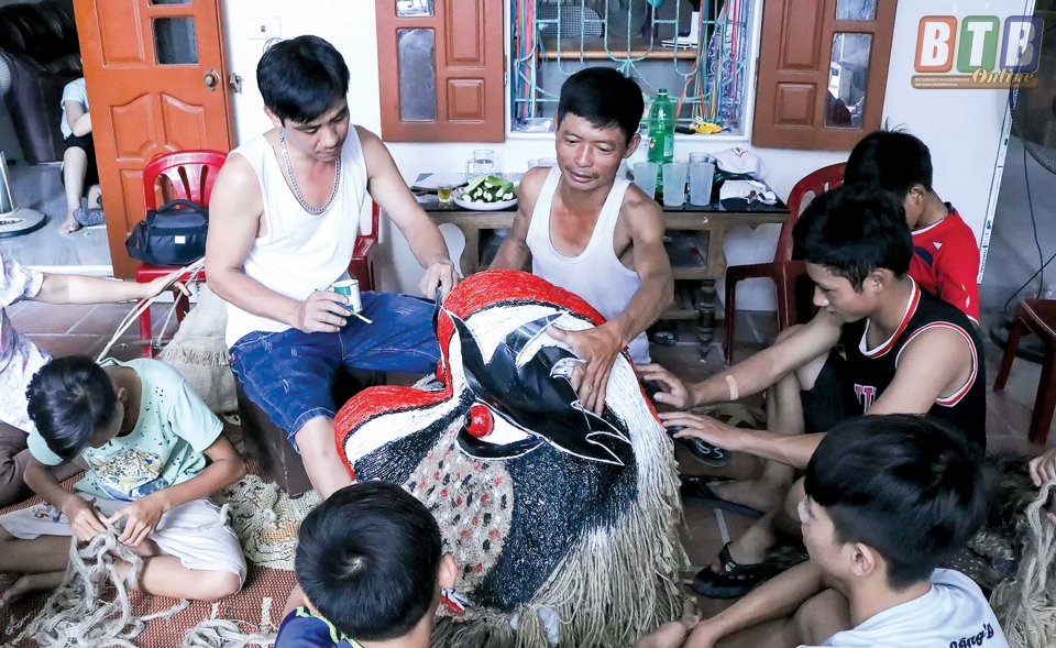 Mỗi dịp trung thu cận kề, trẻ con trong xóm lại tụ họp rất đông để xem anh Hòa, anh Chiều làm đầu lân.