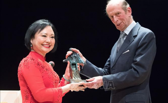 Bà Phan Thị Kim Phúc nhận Giải thưởng Hòa bình Dressden tại Dresden, Đức, ngày 11/2/2019.