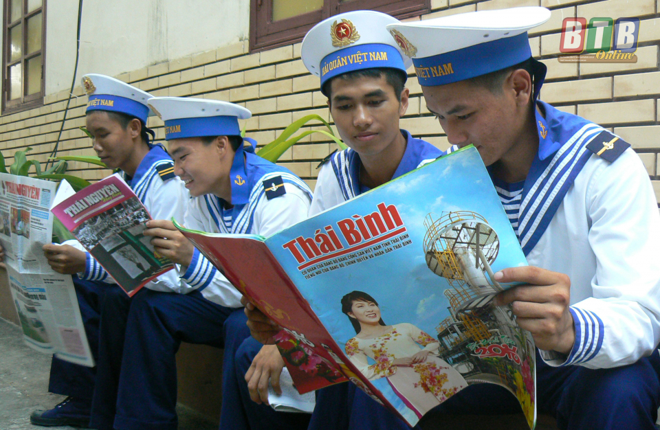 Chiến sỹ đảo Trường Sa đọc báo Thái Bình. Ảnh: Thanh Thưởng