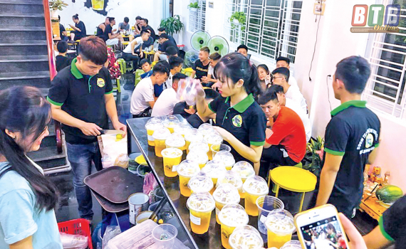 Bên cạnh trà chanh thì món trà tắc mật ong được xem là “cơn bão” mới du nhập vào Thái Bình từ đầu mùa hè năm nay. Với dung tích khoảng 500ml có giá khoảng 10.000 đồng, trà tắc mật ong cũng nhanh chóng trở thành thức uống “phủ sóng” khắp nơi tại thành phố Thái Bình. Tắc hay còn gọi là quất, chỉ cần 3 - 4 quả, cắt đôi và vắt vào ly trà đã được pha sẵn, sau đó, người bán cho thêm mật ong hoặc đường, nhanh tay khuấy đều, thêm cả vỏ tắc nhằm tạo màu sắc hấp dẫn, ấn tượng. Cuối cùng, thêm vài viên đá mát lạnh hòa vào dòng nước trà thanh mát sẽ cho ra ngay một ly trà tắc xua tan cái nắng ngày hè. Chị Nguyễn Thị Lan, một tiểu thương ở chợ Quang Trung chia sẻ: Trà tắc mật ong là đồ uống dễ làm, dễ bán và được nhiều người ưa chuộng. Bình quân, mỗi ngày tôi bán được 40 - 50 cốc. Thời điểm nắng nóng gay gắt kéo dài thì có thể lên đến 100 cốc/ngày. Phần lớn khách hàng yêu cầu ship hàng tận nơi nên tôi phải thuê thêm 1 người để chuyên đi ship hàng.