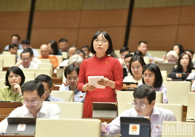 Đại biểu Nguyễn Thị Việt Nga (Hải Dương) phát biểu. (Ảnh: ĐĂNG KHOA).