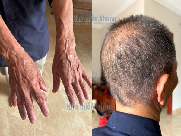 Khi uống Kim Miễn Khang Platinum thì tôi cũng thấy vảy tiếp tục bong ra như cám và hết dần chứ không xuất hiện vùng vảy da chết mới nữa. Đến bây giờ thì nhìn chung da đã nhẵn nhụi rồi, đầu cũng sạch, chỉ có bàn tay hơi nổi tí thôi còn mấy chỗ khác thì ổn định, không ngứa ngáy gì nữa nên tôi phấn khởi lắm. Không ngờ mãi tới khi già tầm tuổi này mới có những tháng ngày thư thái không phải suy nghĩ về bệnh”.