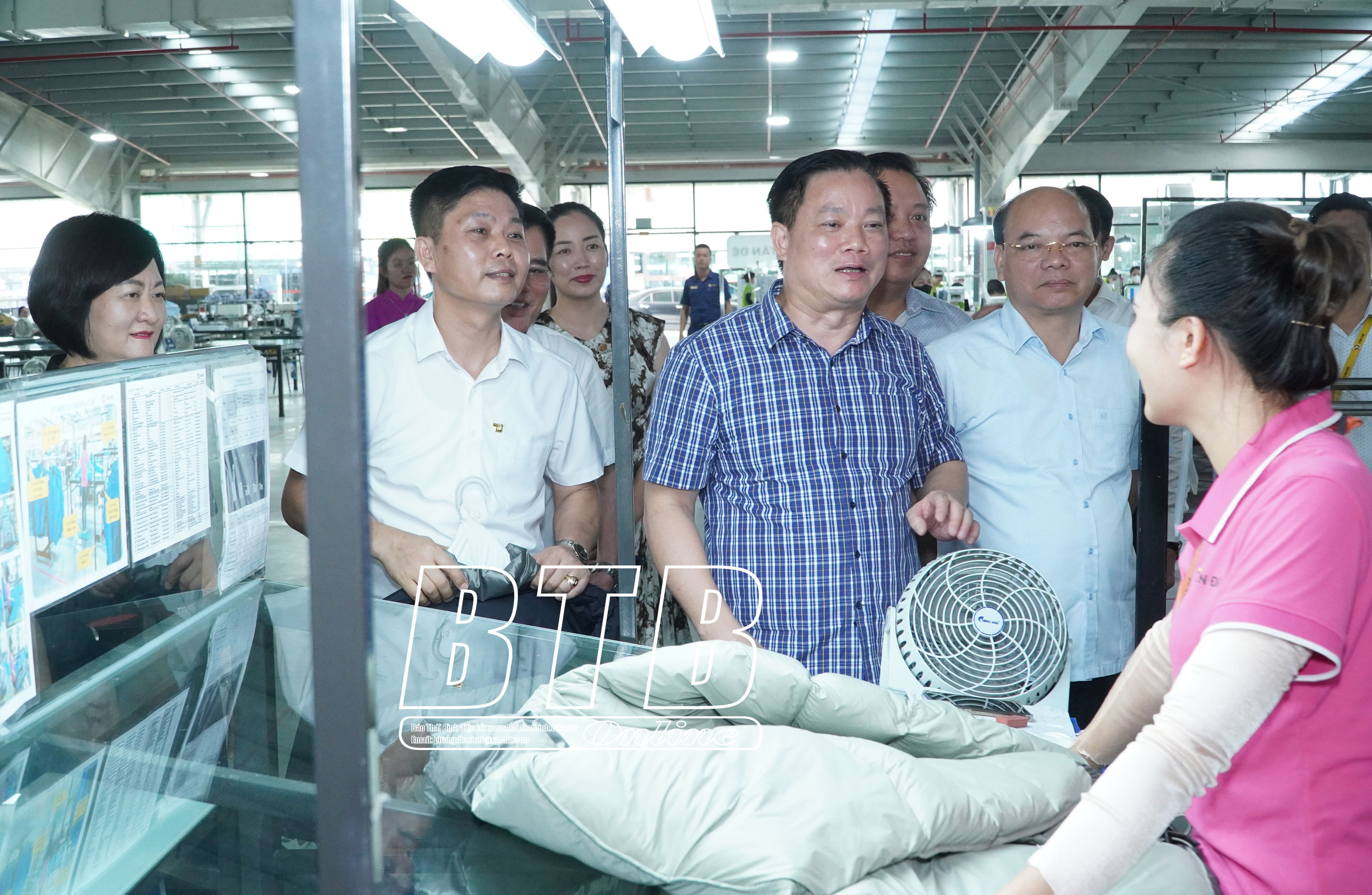 Đồng chí Phó Bí thư Tỉnh ủy, Chủ tịch UBND tỉnh và đoàn đã đến thăm, động viên cán bộ, công nhân và nắm bắt tình hình hoạt động của Công ty Cổ phần Sản xuất hàng thể thao Chi nhánh Thái Bình (Công ty Tân Đệ), Công ty Cổ phần Gốm sứ Long Hầu, Công ty Cổ phần Kỹ thương Thiên Hoàng – Nhà máy gạch men Mikado. Đây là những doanh nghiệp có quy mô sản xuất, doanh thu lớn, giải quyết việc làm cho nhiều lao động và có đóng góp tích cực vào sự phát triển kinh tế -xã hội của tỉnh thời gian qua.