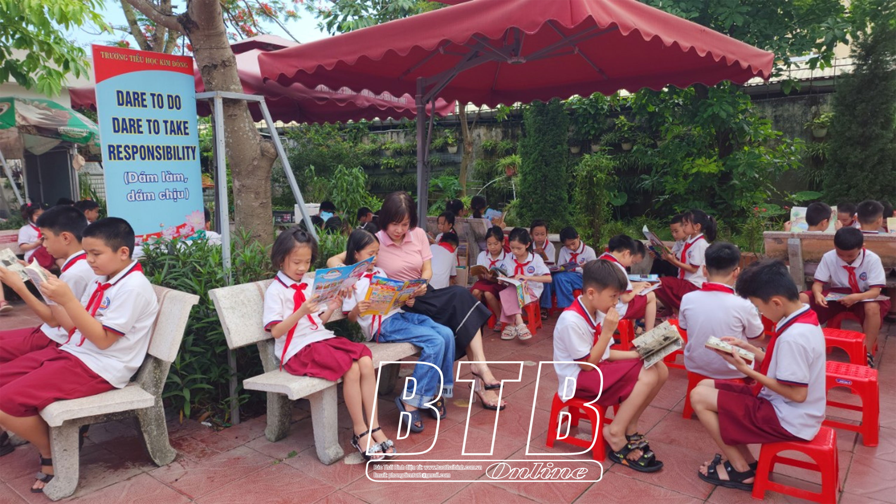 Góc thư viện xanh của các em học sinh Trường Tiểu học Kim Đồng.