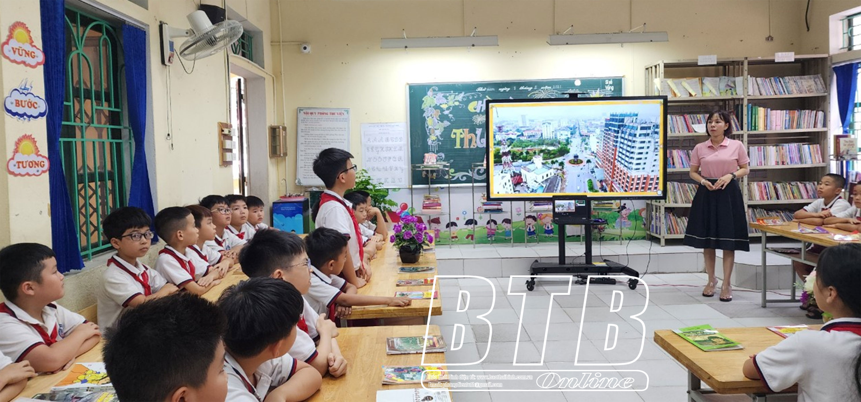 Thông qua các tiết học cũng như hoạt động trải nghiệm, các em học sinh hào hứng tìm hiểu về thị xã Thái Bình xưa, thành phố Thái Bình hôm nay đang từng ngày đổi mới với những công trình xanh, hiện đại.