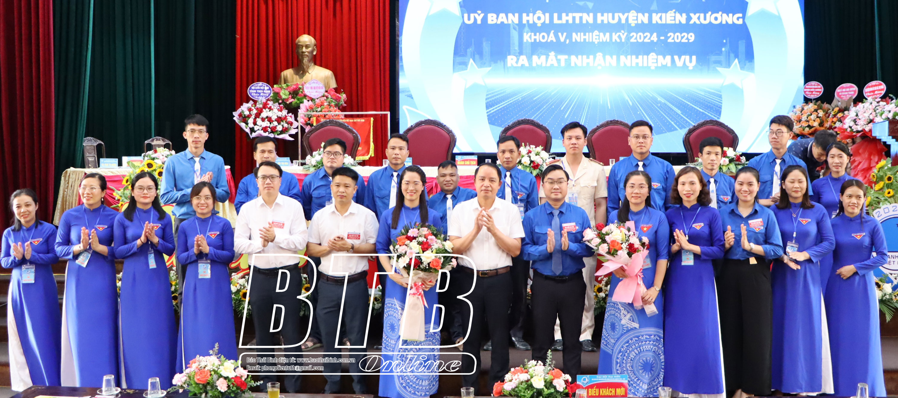 Lãnh đạo huyện Kiến Xương tặng hoa chúc mừng Ủy ban Hội LHTN huyện Kiến Xương nhiệm kỳ 2024-2029.