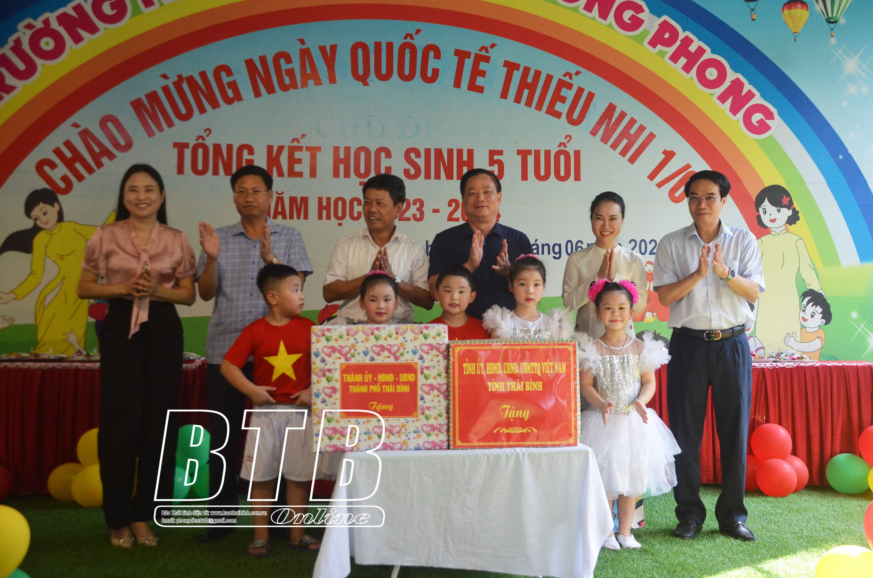Tại Trường Mầm non 1/6 - Lê Hồng Phong, nơi có hơn 1.000 cháu học sinh đang theo học, đồng chí Phó Bí thư Tỉnh ủy, Chủ tịch UBND tỉnh tặng quà, động viên cô và trò nhà trường. Đồng chí dặn dò giáo viên nhà trường phải luôn dành tình yêu thương, quan tâm, chăm lo, dạy dỗ các cháu phát triển đầy đủ cả về thể thất và tinh thần, trở thành con ngoan trò giỏi, cháu ngoan Bác Hồ.