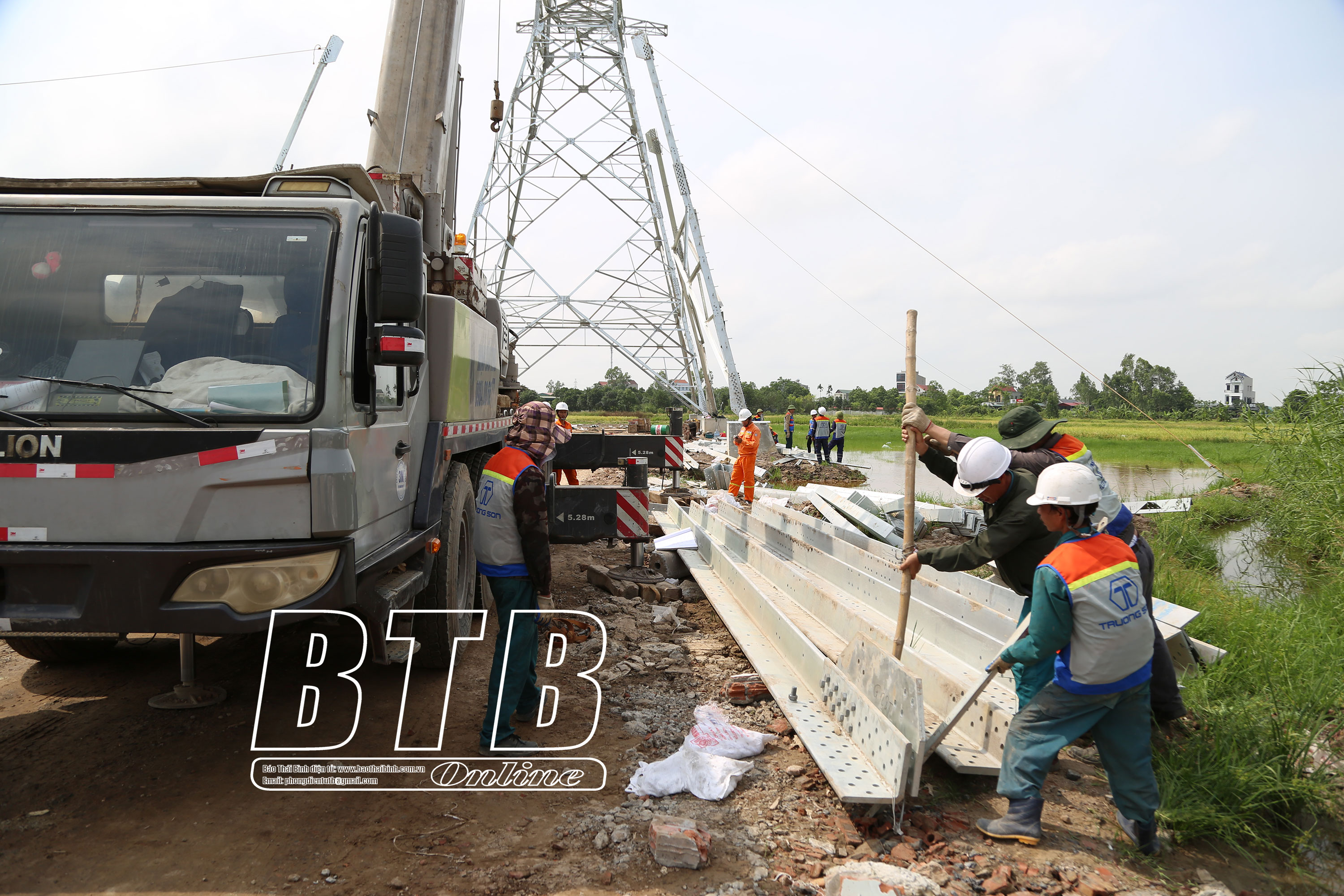 Thi công đường điện 500KV tại huyện Vũ Thư.