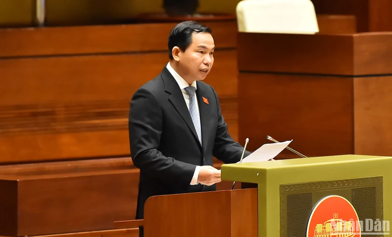 Chủ nhiệm Ủy ban Tài chính, Ngân sách Lê Quang Mạnh trình bày báo cáo thẩm tra. (Ảnh: THỦY NGUYÊN).