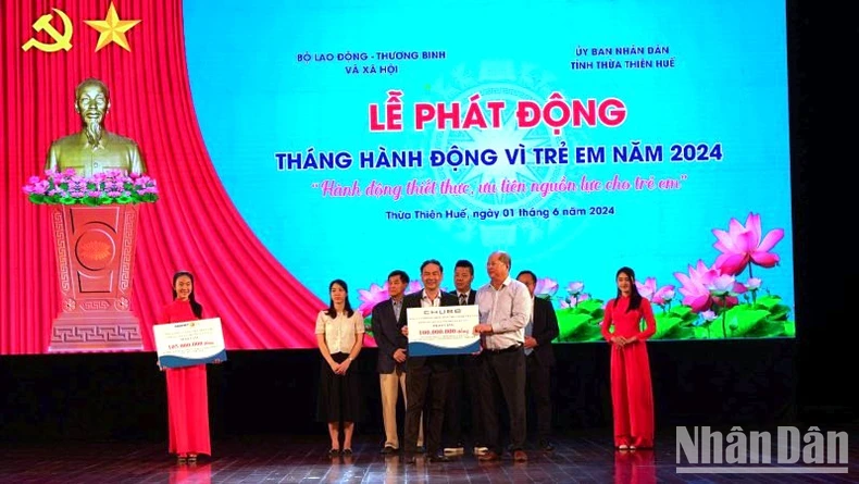 Ngày 1/6, tại thành phố Huế (tỉnh Thừa Thiên Huế), Bộ Lao động, Thương binh và Xã hội tổ chức lễ phát động Tháng hành động vì trẻ em 2024 với chủ đề “Hành động thiết thực, ưu tiên nguồn lực cho trẻ em” và chào mừng Ngày Quốc tế thiếu nhi 1/6.