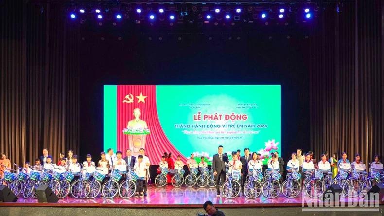 Trao tặng xe đạp cho trẻ em có hoàn cảnh đặc biệt tại lễ phát động Tháng hành động vì trẻ em năm 2024.