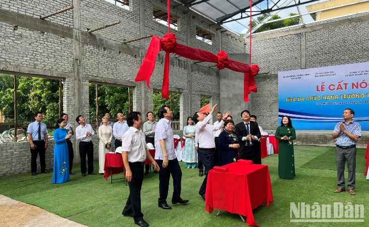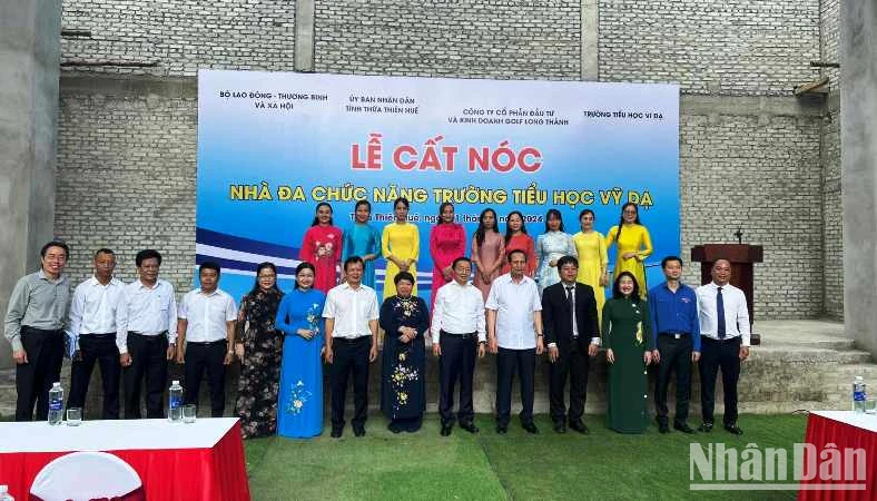 Phó Thủ tướng cùng lãnh đạo các bộ, ban, ngành và tỉnh Thừa Thiên Huế thực hiện nghi thức cất nóc Nhà đa chức năng tại Trường tiểu học Vỹ Dạ (thành phố Huế).