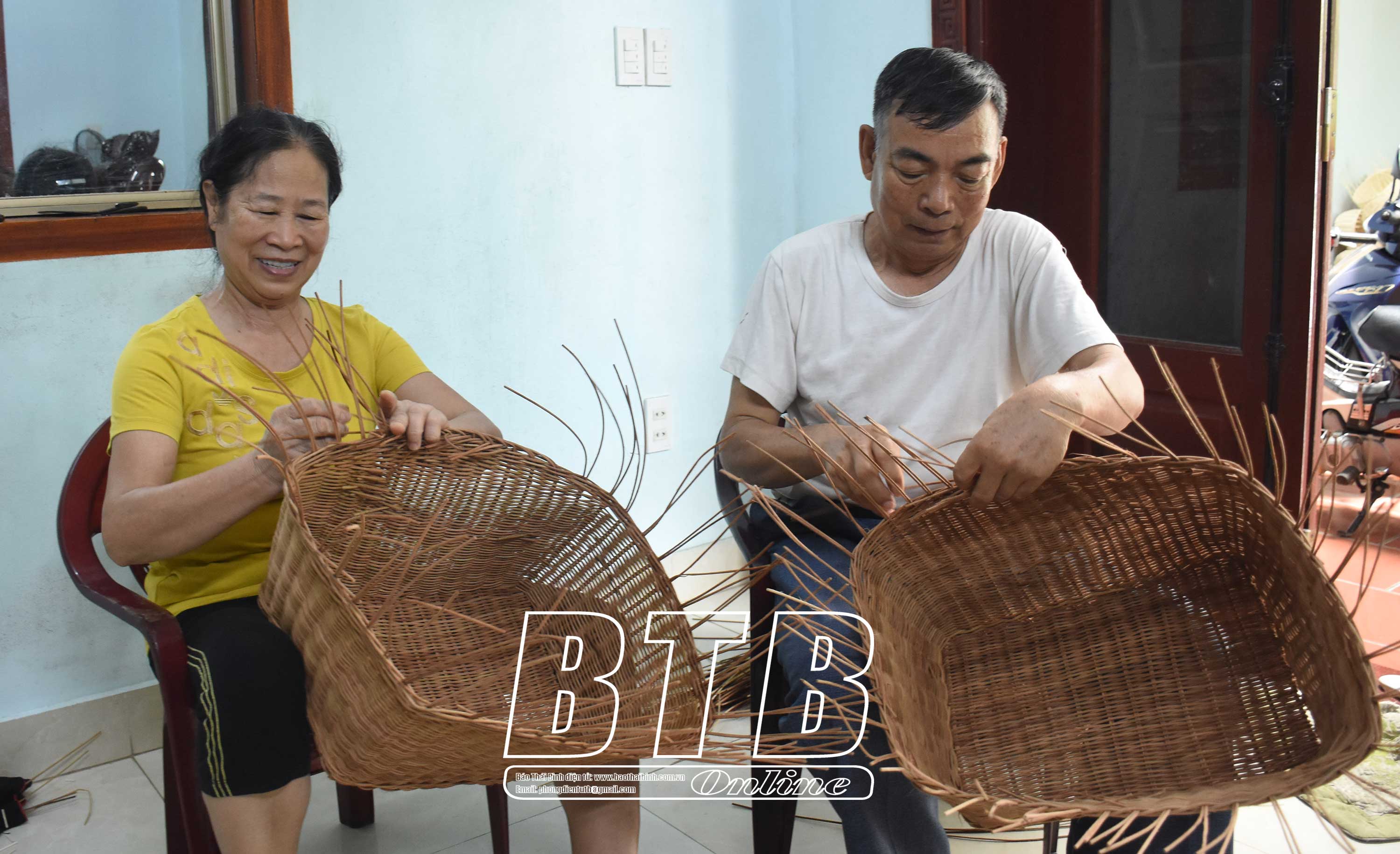 Dù tuổi đã cao song ông Đặng Văn Lành (người đứng giữa), xã Vũ Quý (Kiến Xương) vẫn nỗ lực lao động và tạo việc làm cho người dân địa phương.