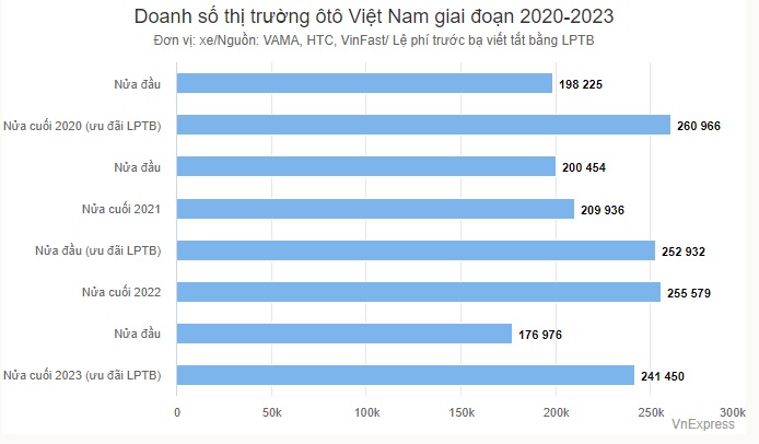 "Năm nay khó. Ưu đãi LPTB sẽ giúp thị trường sôi động hơn nhưng để doanh số trở lại mức bình thường như 2022 hay trước đó thì rất khó", trưởng ban hoạch định chiến lược một hãng xe Nhật thuộc Hiệp hội các nhà sản xuất ôtô Việt Nam (VAMA) nói. "Các hãng đang "cắt máu", tức giảm giá niêm yết chứ không còn là khuyến mại đủ thấy thị trường đang ảm đạm thế nào".