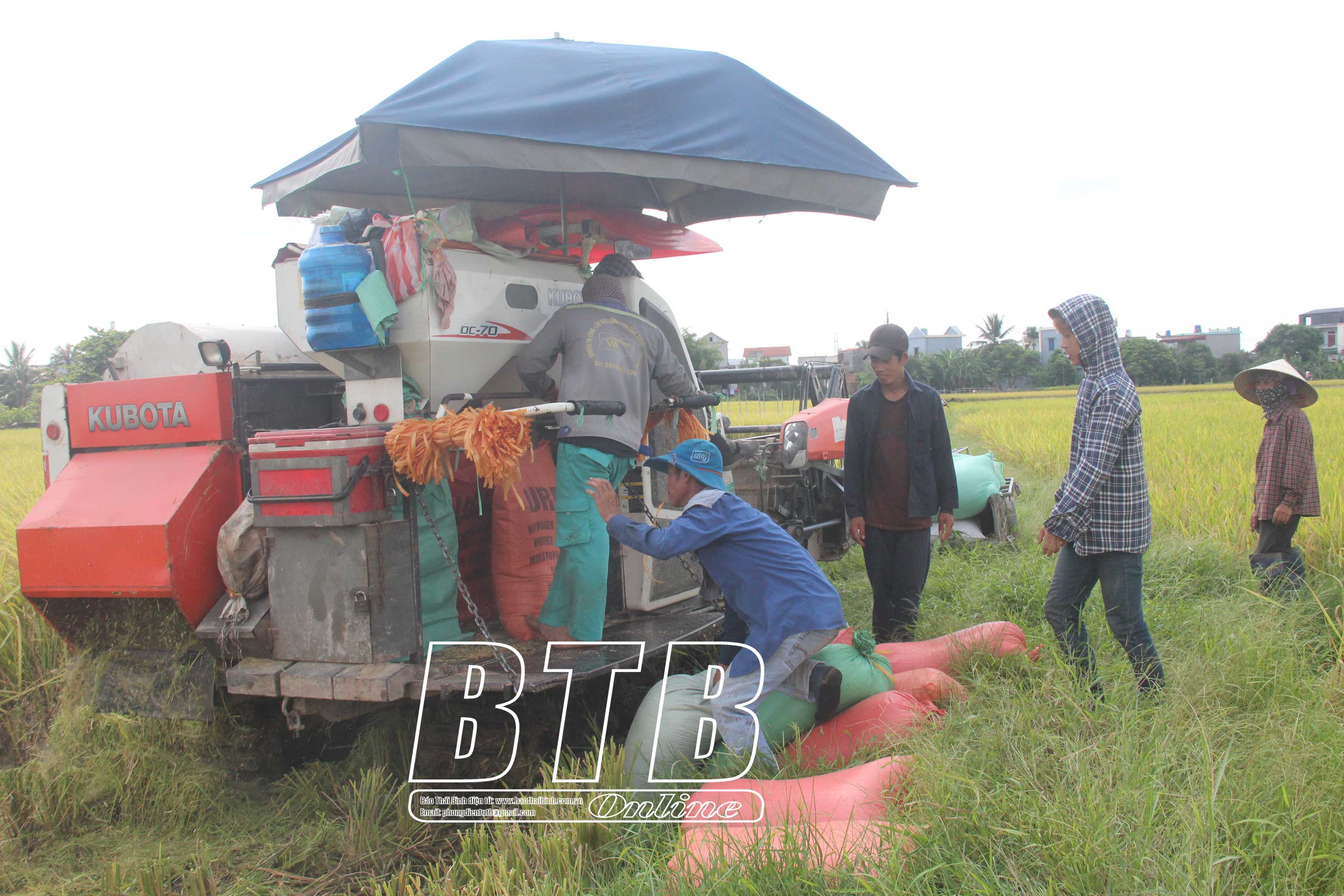 Máy gặt đập liên hợp vừa gặt vừa tuốt lúa giúp giảm chi phí, nhân công, bảo đảm thời vụ.