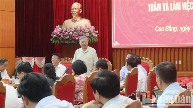 Chủ tịch nước Tô Lâm đề nghị, Đảng bộ Cao Bằng cần tăng tốc, tạo đột phá, sớm về đích trong thực hiện các chỉ tiêu đề ra trong Nghị quyết Đại hội Đảng bộ tỉnh lần thứ 19, nhiệm kỳ 2020-2025.