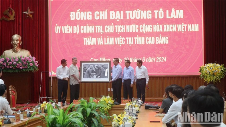 Chủ tịch nước Tô Lâm trao tặng Đảng bộ Cao Bằng bức ảnh "Bác Hồ về thăm Pác Bó".