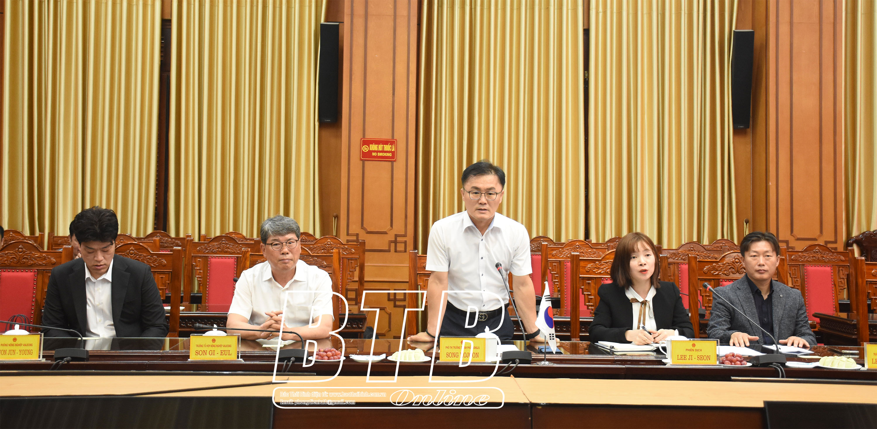 Phát biểu tại buổi làm việc, đồng chí Phó Chủ tịch UBND tỉnh bày tỏ vui mừng được đón đoàn công tác thành phố Yeongju sang thăm và làm việc tại Thái Bình.