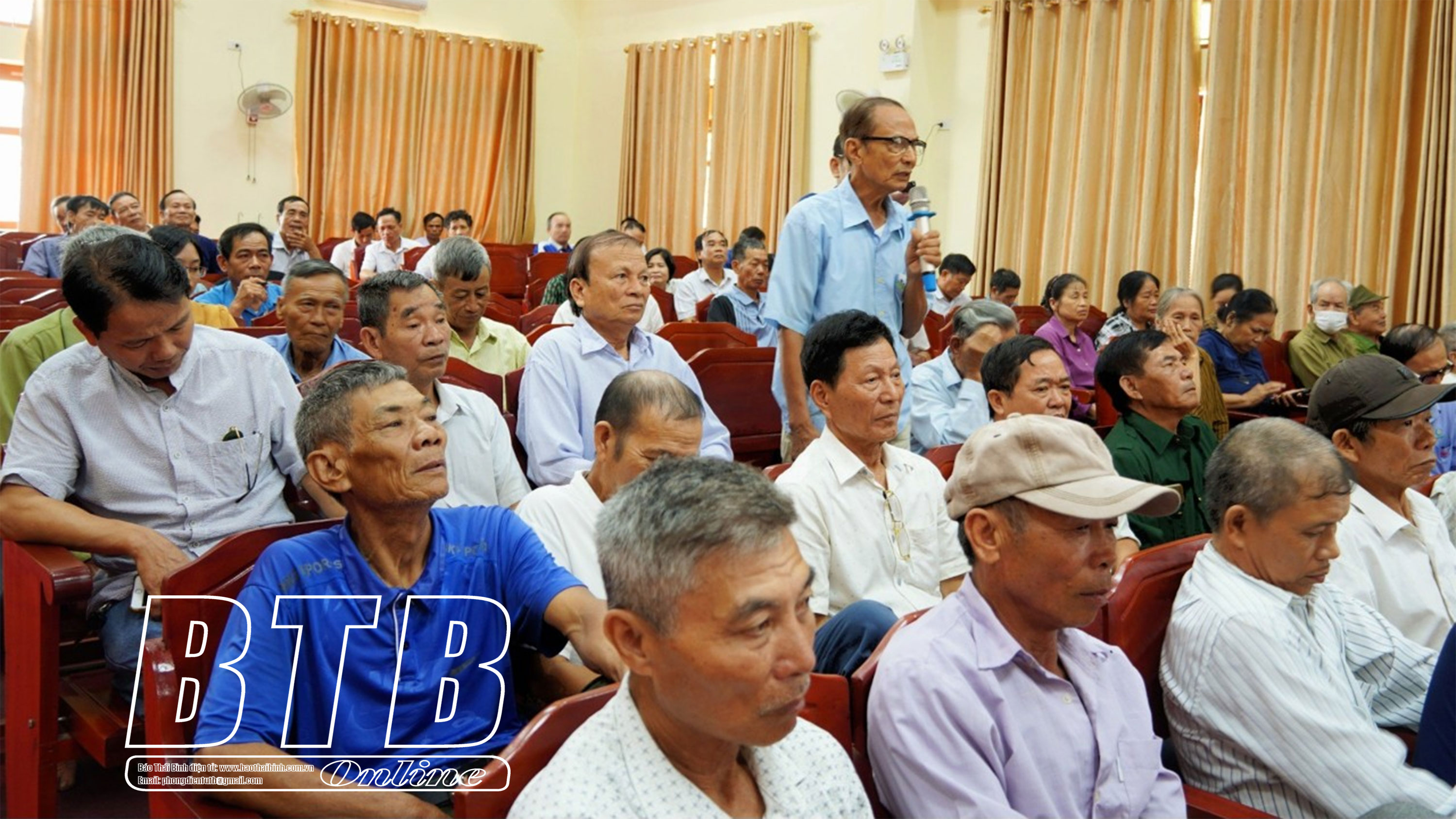 Người dân xã Thụy Trình phát biểu ý kiến tại buổi tiếp xúc, đối thoại.