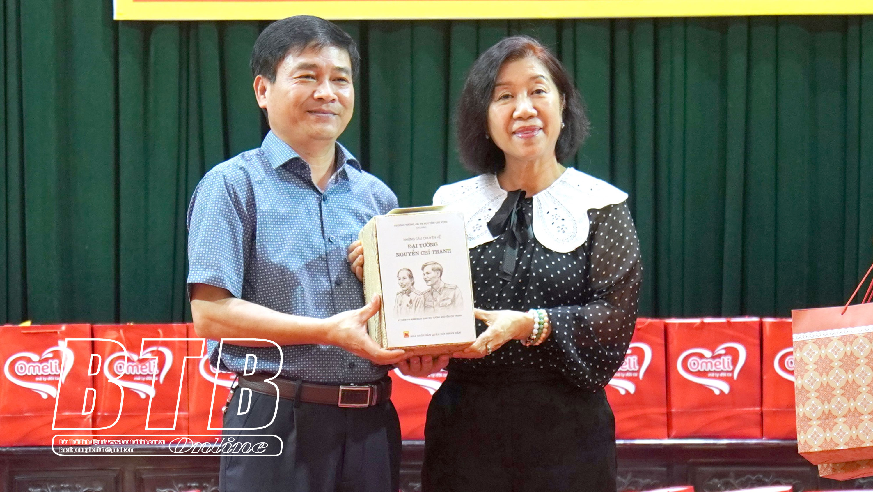 Tại chương trình tặng quà, đại diện Bảo tàng Đại tướng Nguyễn Chí Thanh đã trao tặng UBND huyện Đông Hưng cuốn sách "Những câu chuyện về Đại tướng Nguyễn Chí Thanh".