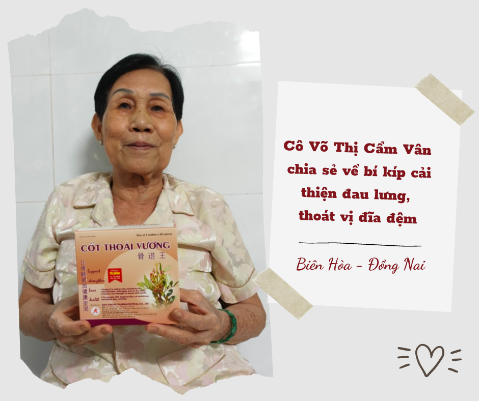 Hy vọng, những chia sẻ chân thành của cô Vân sẽ giúp những người đang bị đau lưng, thoát vị đĩa đệm có thêm giải pháp cải thiện bệnh hiệu quả, an toàn. Và đừng quên sử dụng Cốt Thoái Vương giúp cột sống khỏe mạnh hơn mỗi ngày nhé!