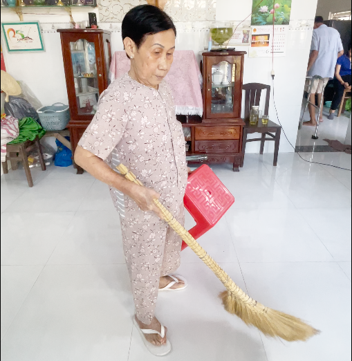 Nhờ Cốt Thoái Vương, cô Vân đã có thể đi lại, quét nhà bình thường