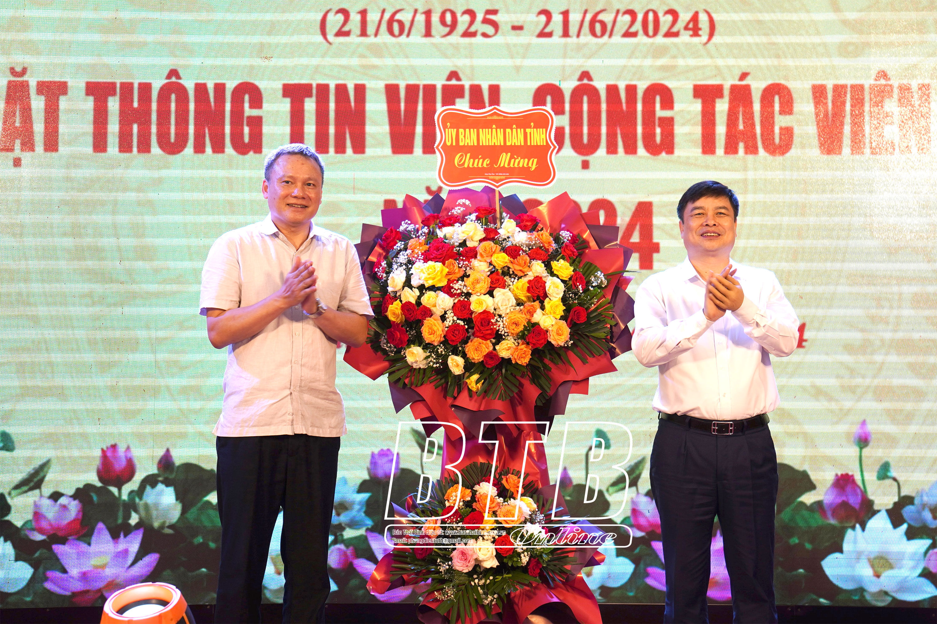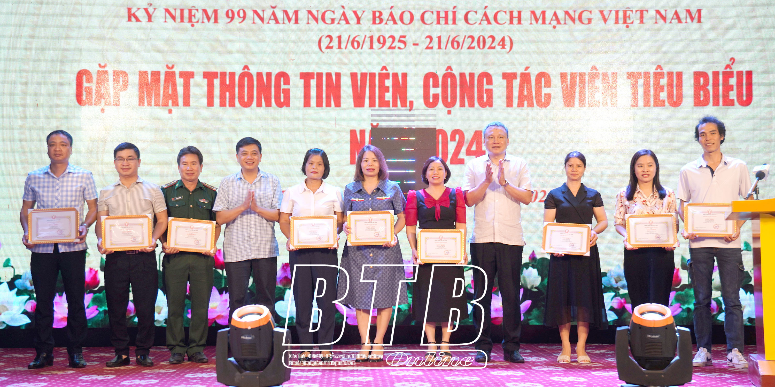 Các đồng chí: Phạm Đồng Thụy, Ủy viên Ban Thường vụ, Trưởng ban Tuyên giáo Tỉnh ủy; Phạm Văn Nghiêm, Tỉnh ủy viên, Phó Chủ tịch UBND tỉnh trao thưởng cho các tập thể, cá nhân tiêu biểu.Các đồng chí: Hoàng Minh Sơn, Tỉnh ủy viên, Tổng Biên tập Báo Thái Bình, Chủ tịch Hội Nhà báo tỉnh; Đỗ Như Lâm, Giám đốc Sở Thông tin và Truyền thông tặng giấy khen của Báo Thái Bình cho các tập thể, cá nhân tiêu biểu.