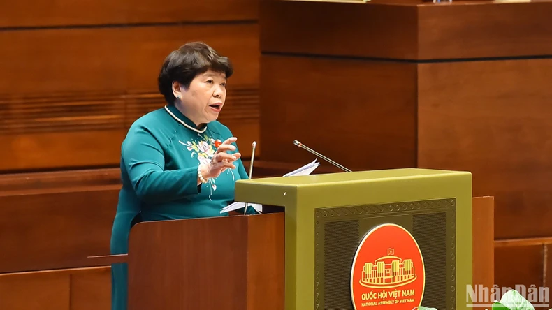 Chủ nhiệm Ủy ban Xã hội của Quốc hội Nguyễn Thúy Anh trình bày báo cáo thẩm tra về dự thảo Luật. (Ảnh: THỦY NGUYÊN).
