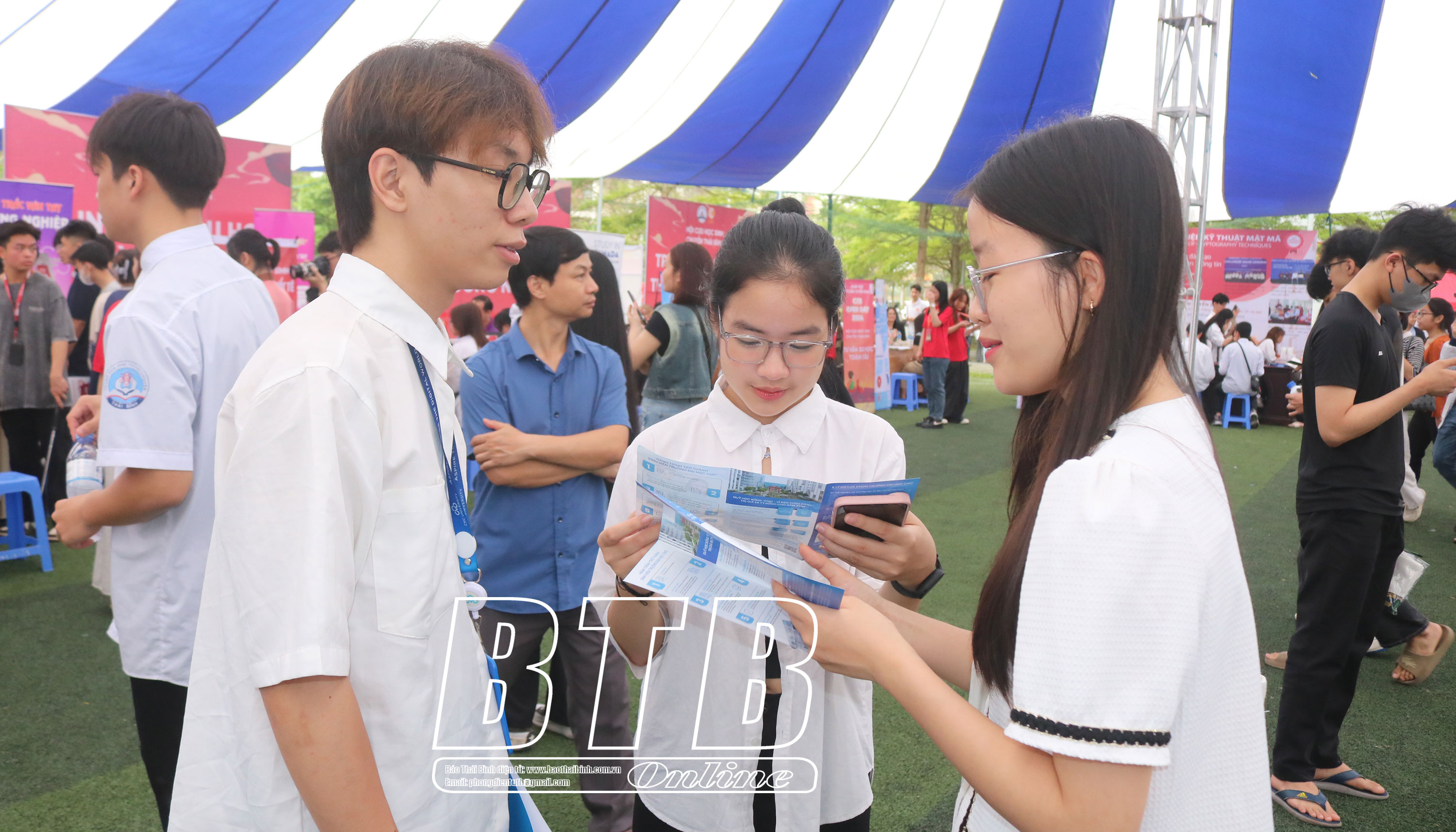 Học sinh lớp 12 tìm hiểu về thông tin tuyển sinh của các trường đại học.