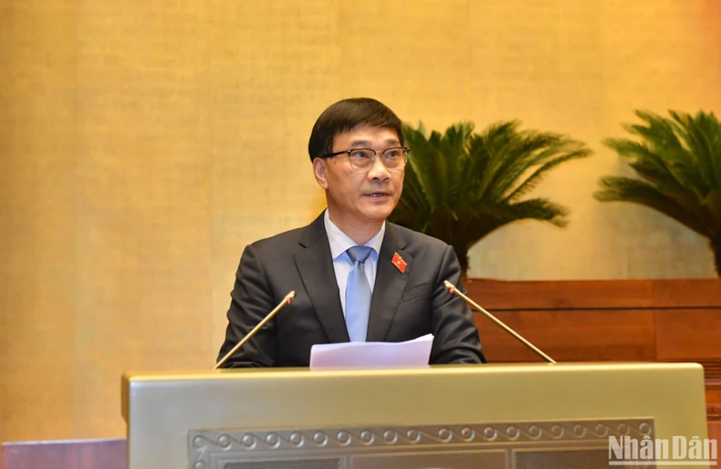 Chủ nhiệm Ủy ban Kinh tế của Quốc hội Vũ Hồng Thanh trình bày báo cáo thẩm tra về dự án Luật. (Ảnh: ĐĂNG KHOA).