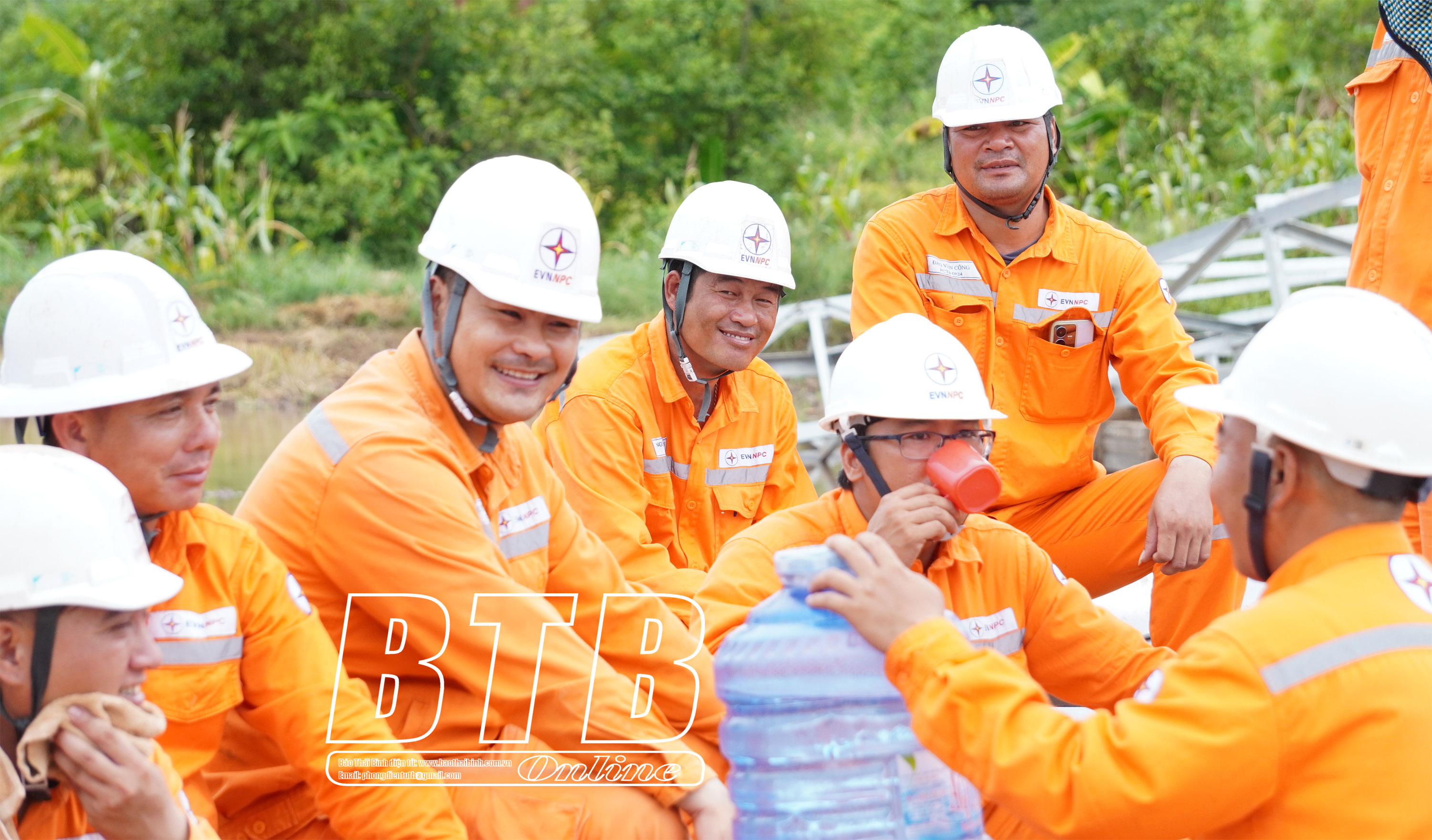 Cán bộ, công nhân ngành điện “vượt nắng, thắng mưa”, quyết tâm đưa dự án về đích đúng tiến độ.