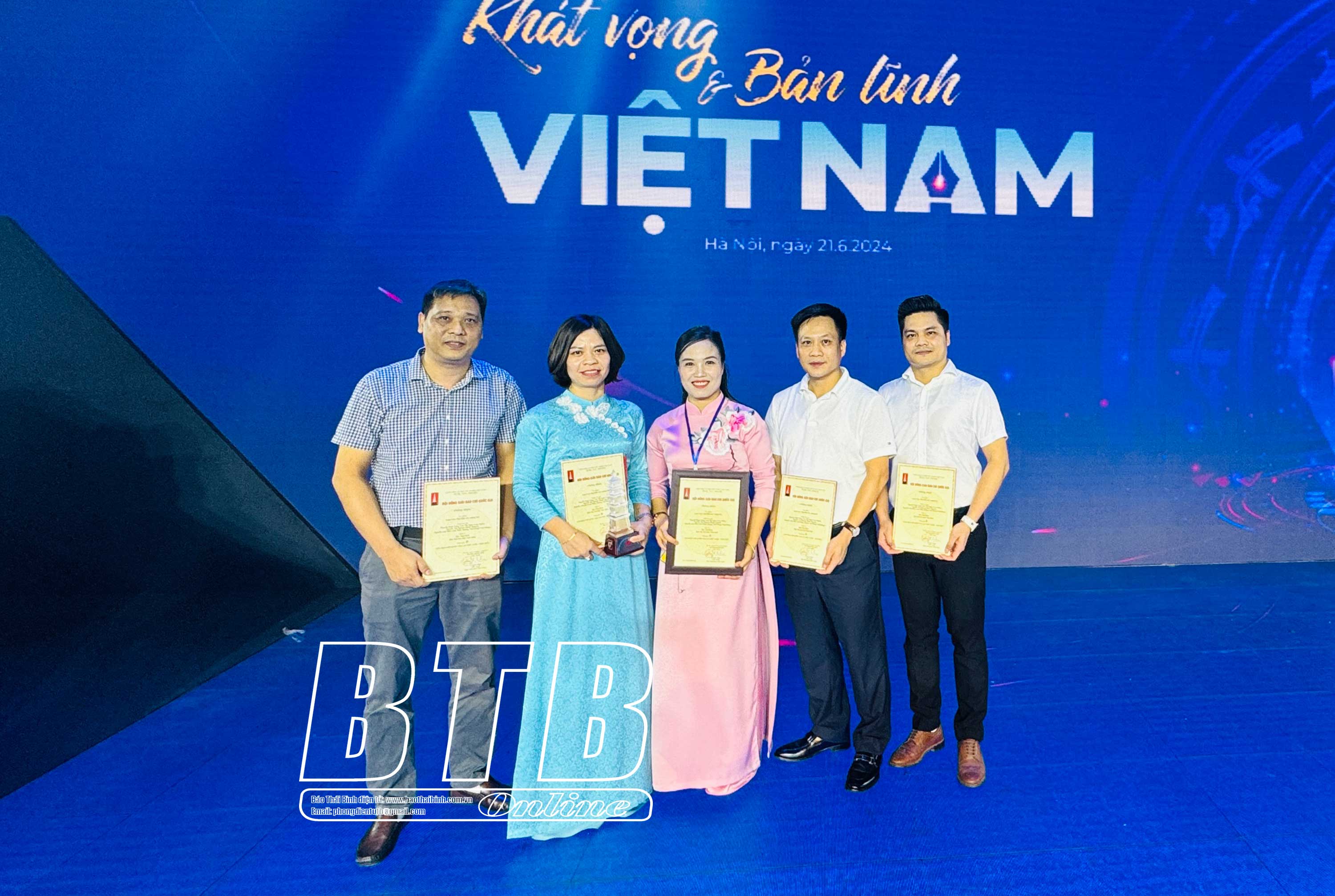 Hội Nhà báo tỉnh Thái Bình có 2 tác phẩm đạt giải báo chí quốc gia. Báo Thái Bình vinh dự đạt giải B với tác phẩm “Đại điền - Xây ruộng lớn” gồm 5 kỳ của nhóm tác giả: Lưu Ngần, Minh Nguyệt, Đình Tùng, Anh Dân, Việt Hùng. Đài Phát thanh và Truyền hình tỉnh đạt giải Khuyến khích với tác phẩm “Chuyện làng đũi Nam Cao - Giữ lại di sản cho mai sau” của nhóm tác giả Quang Hưng, Hoài Thu, Nguyên Nhung, Đức Anh, Hoàng Hải.