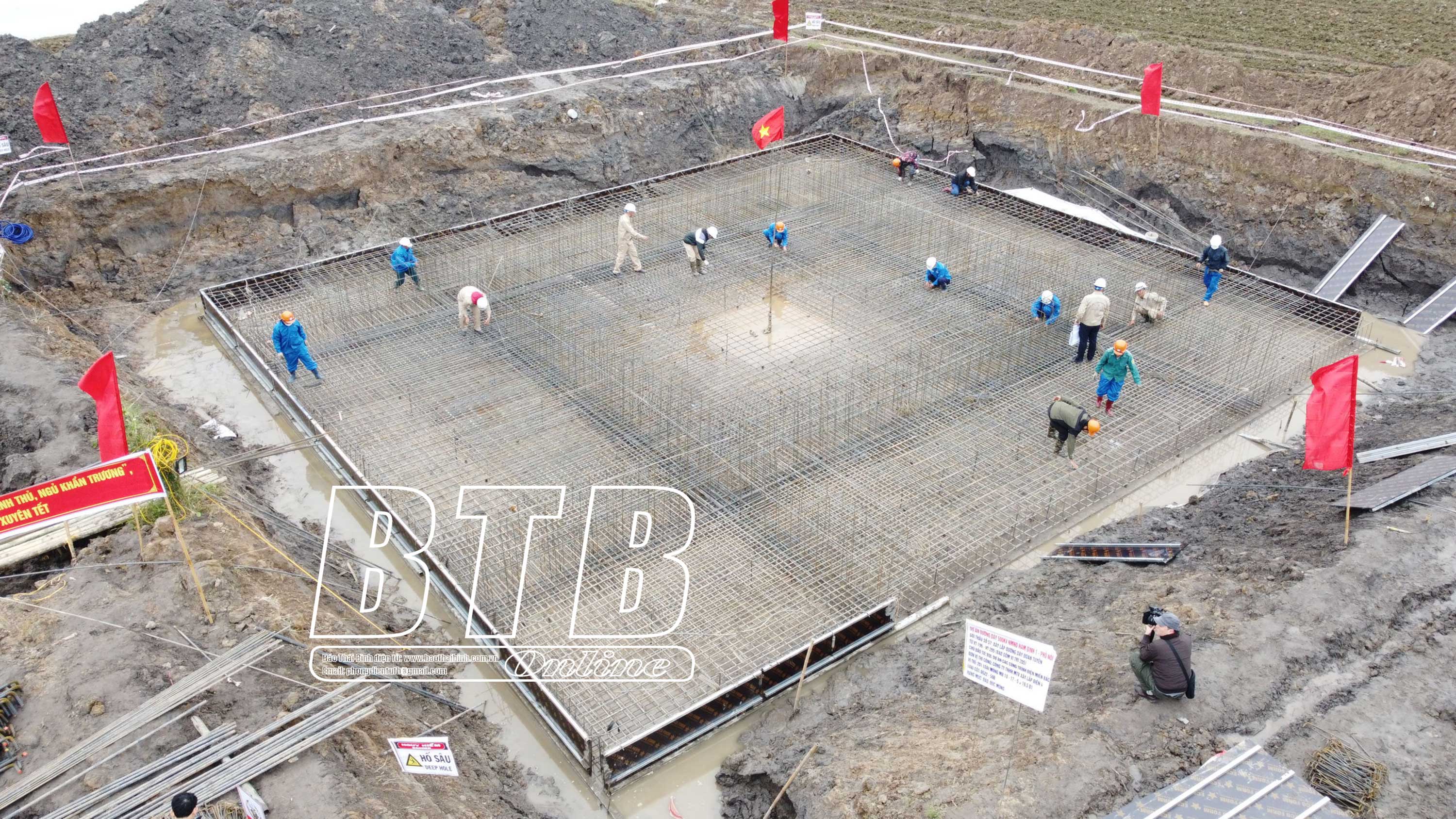 Ông Phạm Văn Quỳnh, cán bộ Ban Quản lý dự án các công trình điện miền Bắc phụ trách địa bàn Thái Bình chia sẻ: Nhờ có vật tư, phương tiện tại chỗ, thời gian thi công các hạng mục công trình cũng được rút ngắn đáng kể. Đến cuối tháng 5, chúng tôi đã đào, đúc xong toàn bộ 107 móng cột, đồng thời dựng xong gần 60 cột và gấp rút hoàn thành dựng các cột còn lại để triển khai kéo dây toàn tuyến.