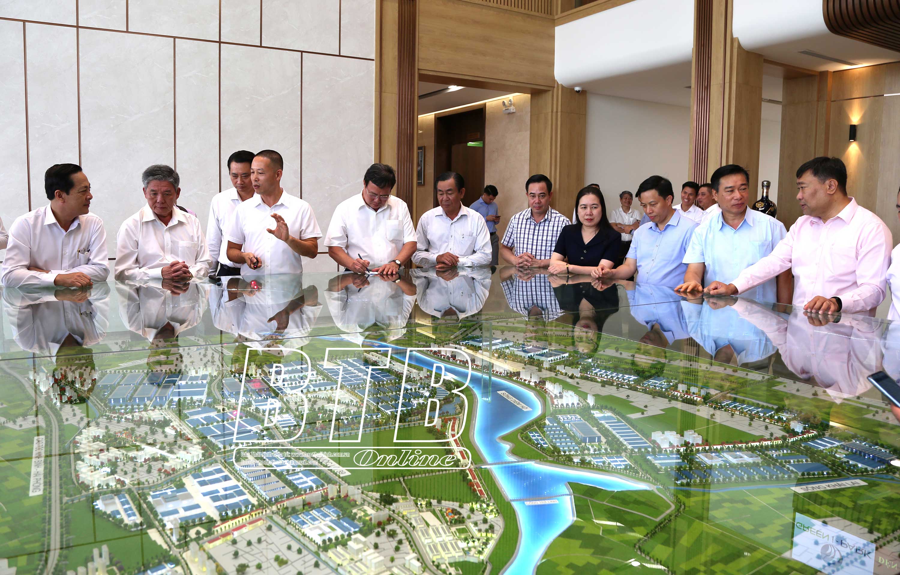 Lãnh đạo Công ty Cổ phần Green i-Park giới thiệu với đoàn đoàn công tác của Ban Thường vụ Tỉnh ủy Trà Vinh về KCN Liên Hà Thái.