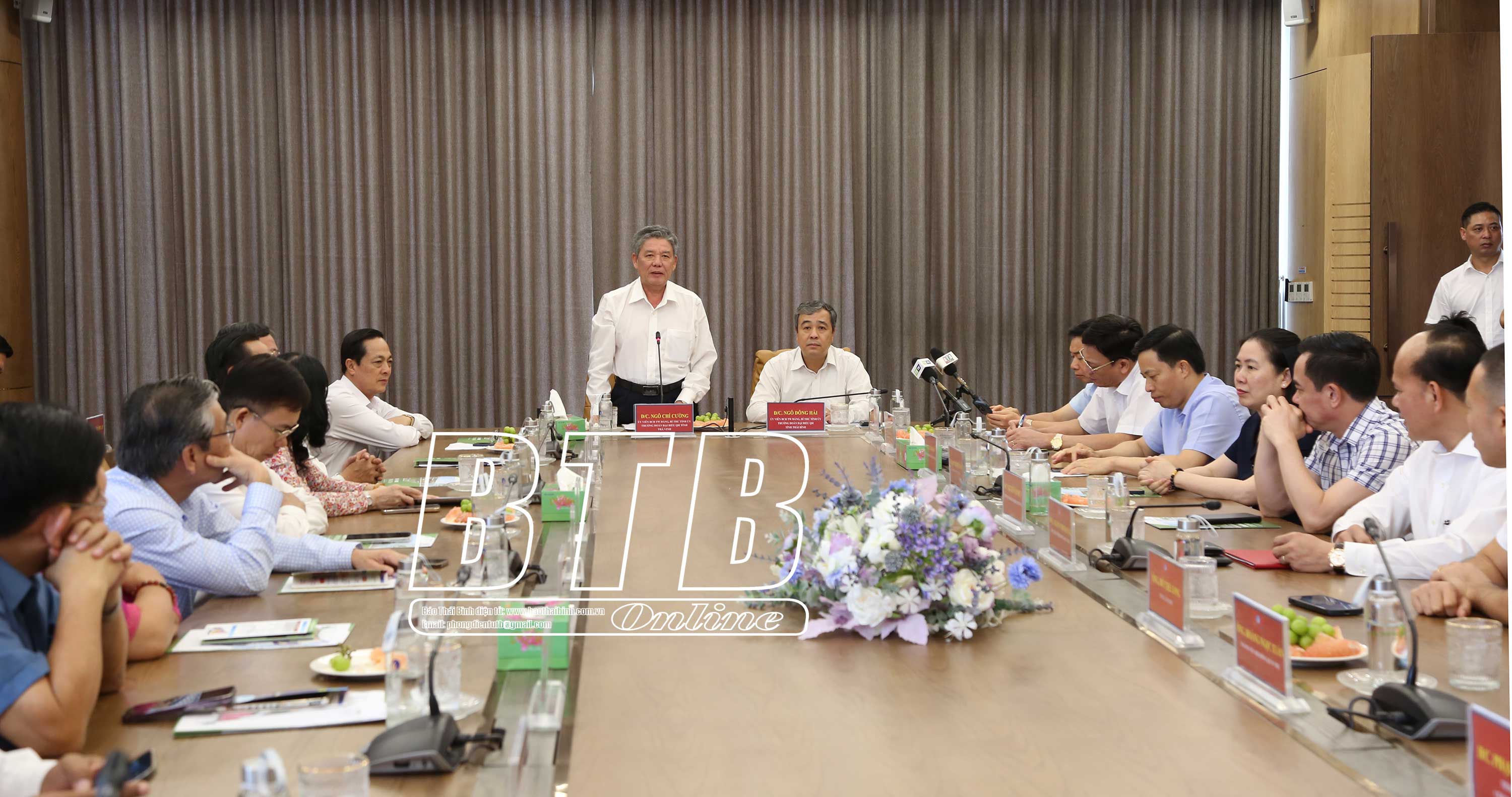 Đồng chí Ngô Đông Hải, Ủy viên Ban Chấp hành Trung ương Đảng, Bí thư Tỉnh ủy, Trưởng đoàn đại biểu Quốc hội tỉnh phát biểu tại buổi làm việc.