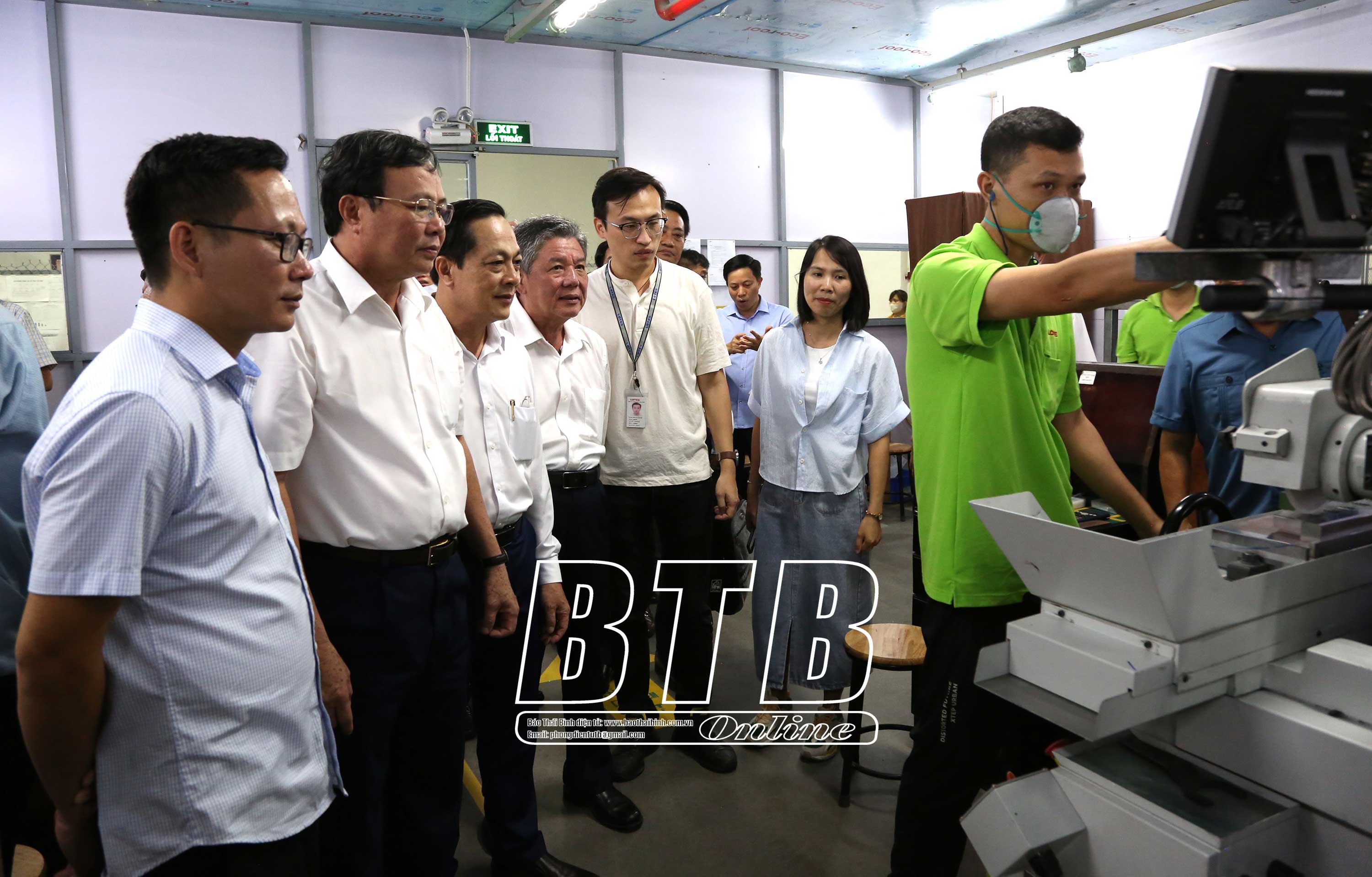Đoàn công tác của Ban Thường vụ Tỉnh ủy Trà Vinh tham quan nhà máy sản xuất của Công ty TNHH Lotes Việt Nam tại KCN Liên Hà Thái.