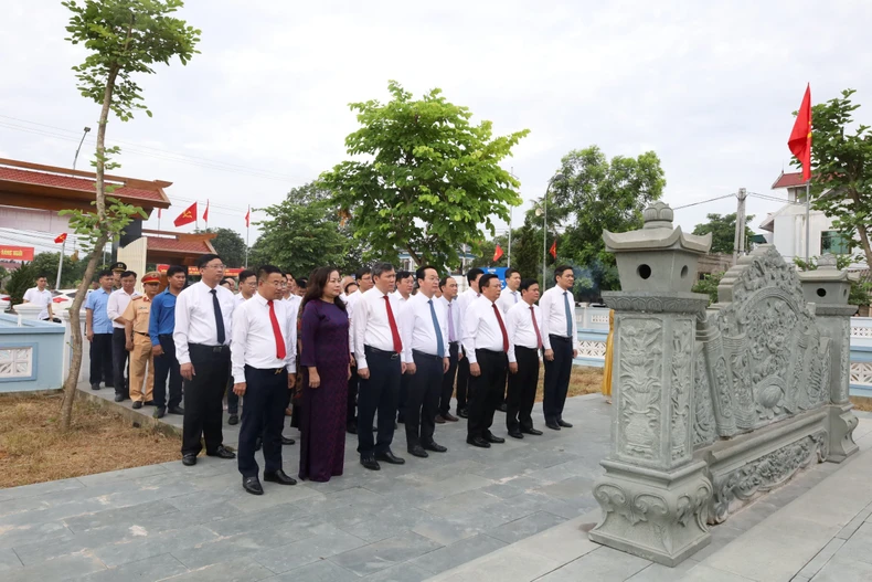 Đồng chí Nguyễn Xuân Thắng, Ủy viên Bộ Chính trị, Giám đốc Học viện Chính trị quốc gia Hồ Chí Minh, Chủ tịch Hội đồng Lý luận Trung ương và lãnh đạo tỉnh Nghệ An, các đại biểu dâng hương tại khu mộ đồng chí Lê Hồng Sơn ở xã Xuân Hòa, huyện Nam Đàn.